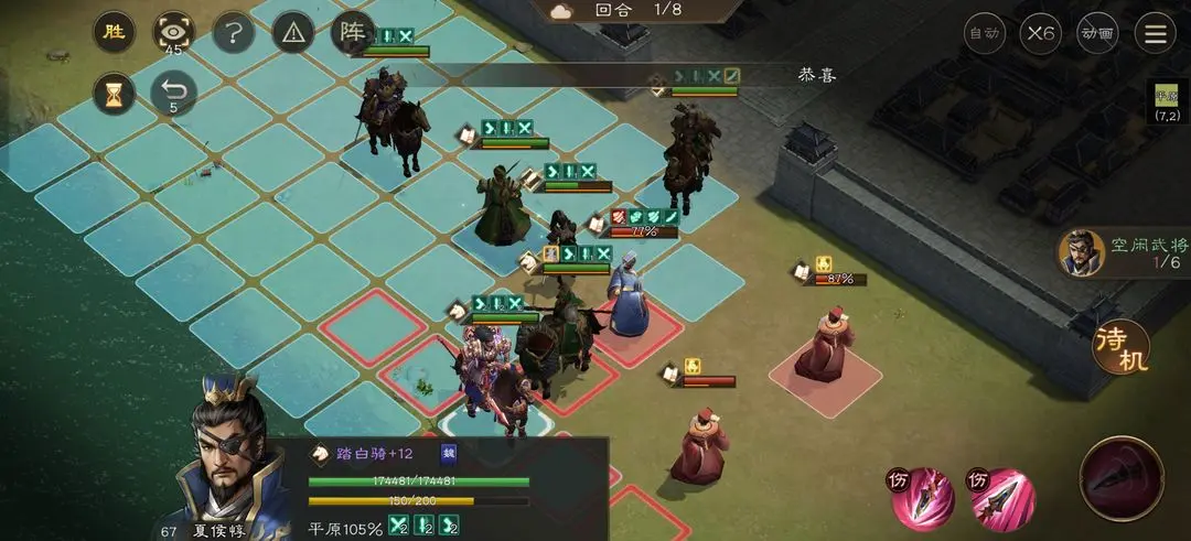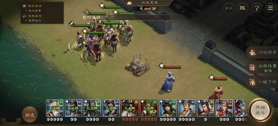 2.加攻不拖延:主角和法正驱散后,曹操马上加攻,让主力输出享受加成,快速削减荀彧血量。曹操加攻后注意自身站位,别被集火。