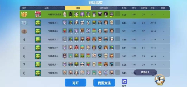 后期玩家需要提升人口,建议每回合研读一次棋谱,并且在金币有剩余的情况下,主动刷新商店搜索棋子,主要目标为得到五费棋子——海啸追猎者。若玩家可以升至10级,那么建议为阵容增添攻击型棋子,如暗之灵、矮人直升机等。