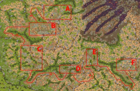 从任意一个蛮角突破到内圈每个画线的区域大概有60个高级资源点攻破蛮角后继续转移到最近的资源区域附近所有人保留一个资源点后续接着攻打这个冰魔待该资源区域被占光之后,以小组形式转移到下一个资源区域建议每个人在每个资源区域都留一个资源点