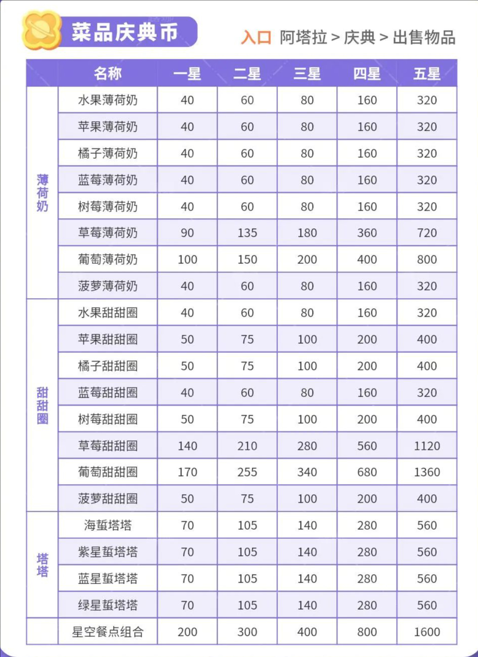 星空薄荷奶(8)水果薄荷奶、苹果薄荷奶、橘子薄荷奶、蓝莓薄荷奶树莓薄荷奶、草莓薄荷奶、葡萄薄荷奶、菠萝薄荷奶奶甜甜圈(8)水果甜甜圈、苹果甜甜圈、橘子甜甜圈、蓝莓甜甜圈树莓甜甜圈、草莓甜甜圈、葡萄甜甜圈、菠萝甜甜圈翡翠塔塔(4)翡翠海蜇塔塔、翡翠紫星蜇塔塔翡翠蓝星蜇塔塔、翡翠绿星蜇塔塔星空餐点组合(1)。