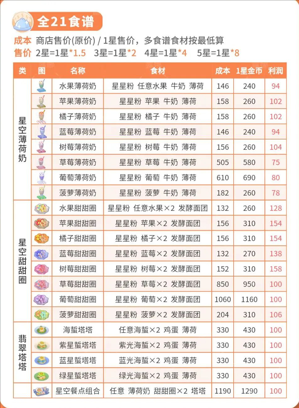 心动小镇引星河庆典21种星空食谱图鉴攻略