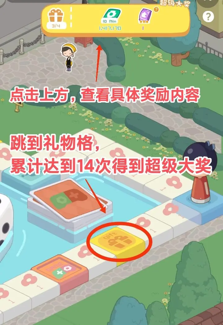 完成今日任务,领取骰子,触发不同的事件,领取不同的奖励。