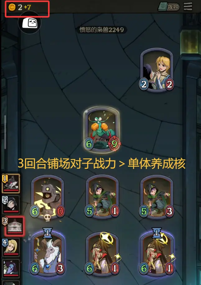 前期主要目标是利用英雄技能和商店刷新机制,以最小经济代价获取高性价比随从。需要平衡血量健康与升本速度,根据种族特性灵活调整战术节奏。