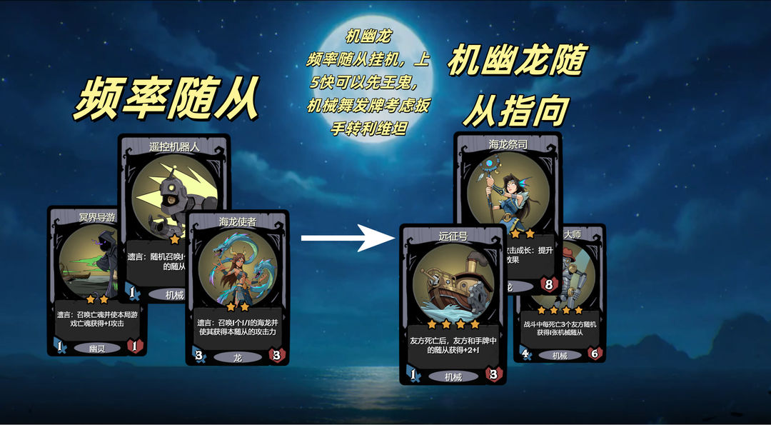 铺场型随从如龙语者、祈星师成为首选,频率型随从如螃蟹、海龙使者次之。单核培养型随从价值降低,仅在特定英雄技能下考虑选用。