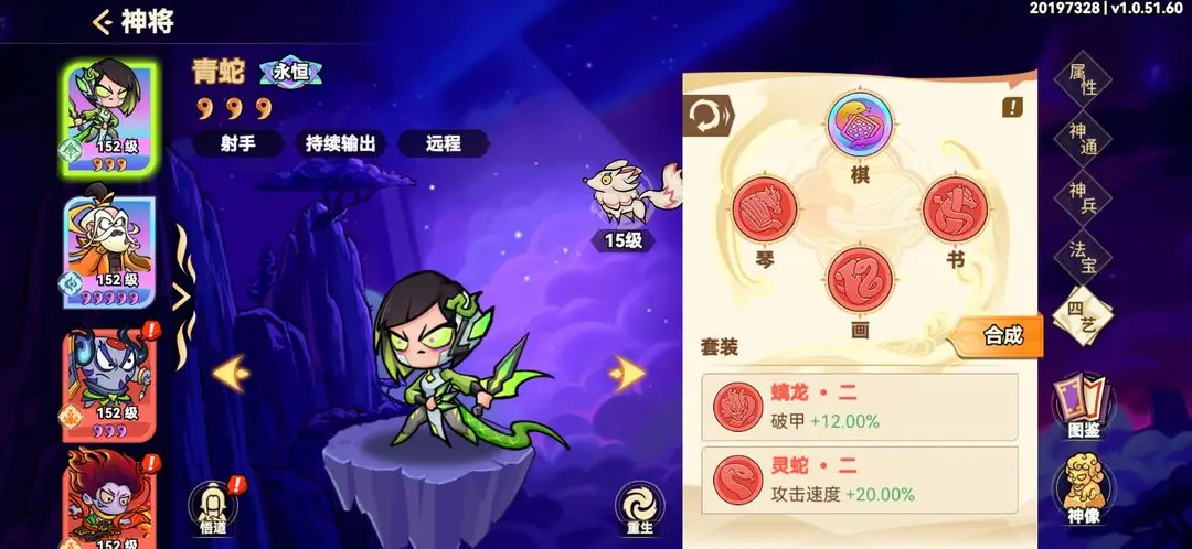 螭龙·攻击套装-破甲+20.00%暴击+15.00%;灵蛇·增益套装-攻击速度+30.00%闪避+20.00%;