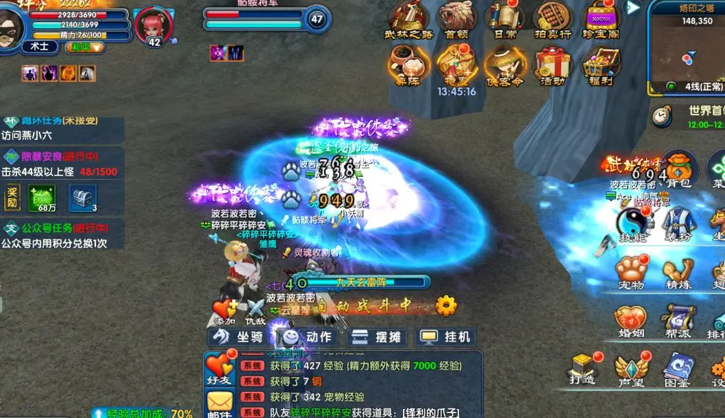 完成除暴安良任务可获得大量经验值奖励,是快速升级的重要途径。机缘宝箱包含多种珍贵道具,开启后概率获得魔力之石、宠物升级丹、属性石等强化材料,对角色成长具有重要价值。
