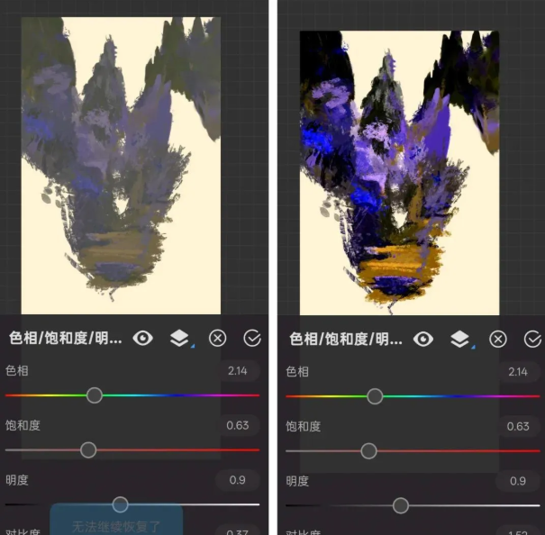 明度控制整体明暗变化。右调增强画面亮度,左调降低亮度实现暗化效果。