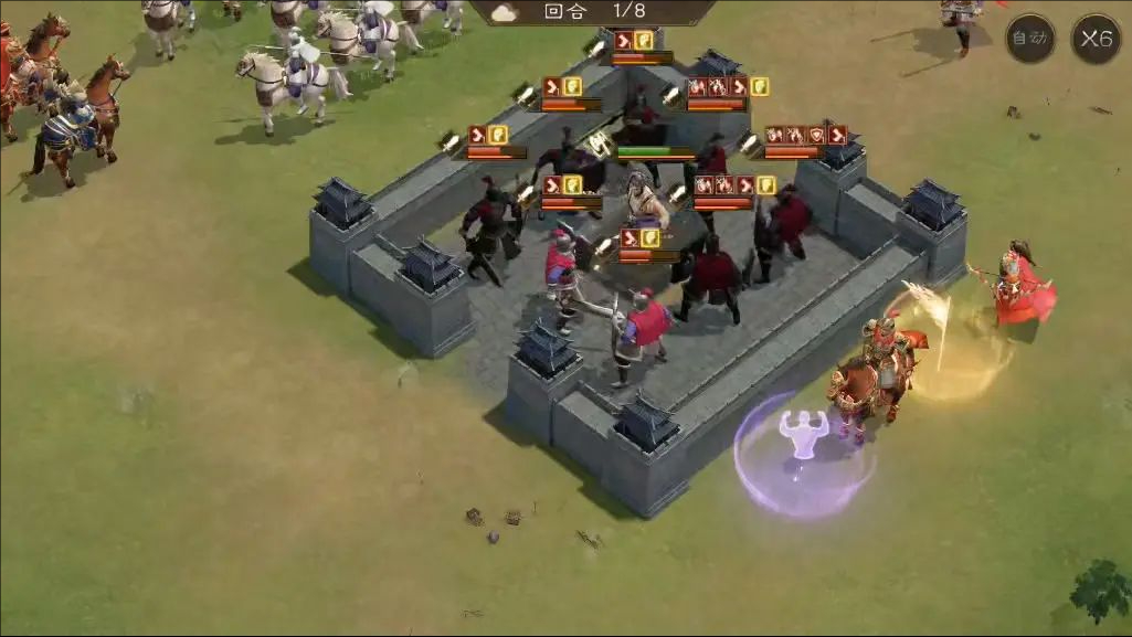 黄忠置于后排安全位置,典韦顶前吸收伤害。首回合优先清理敌方弓兵单位,减少远程威胁。