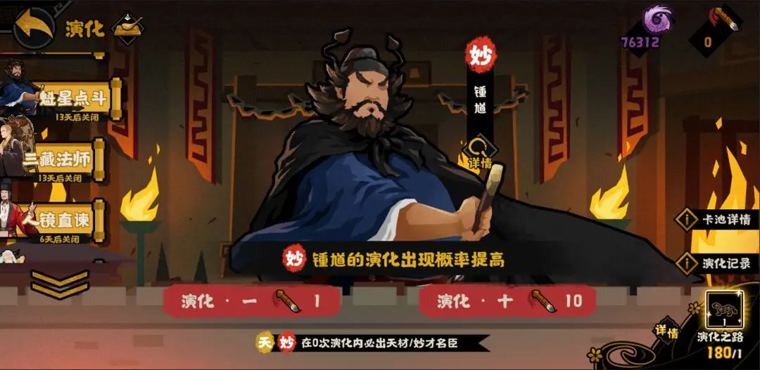 与此同时,锺馗的卡池将于9月5日上线哦!9月5日至9月18日 ,全新妙才名臣——锺馗,演化概率限时上升!