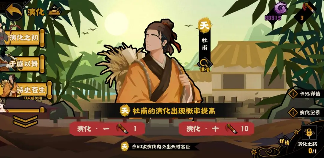 9月12日至9月25日,“大庇天下寒士俱欢颜!” 大唐天材名臣·杜甫,演化概率限时上升!