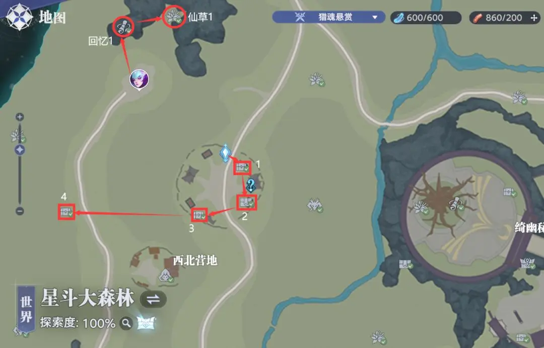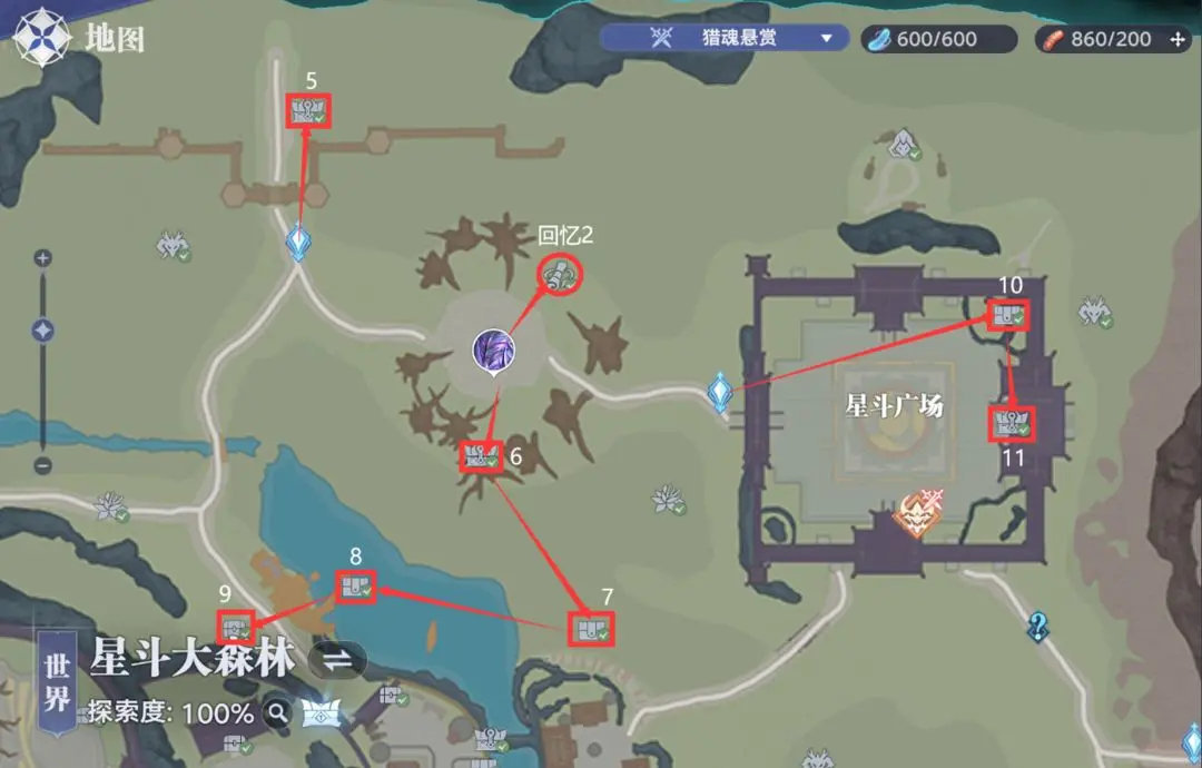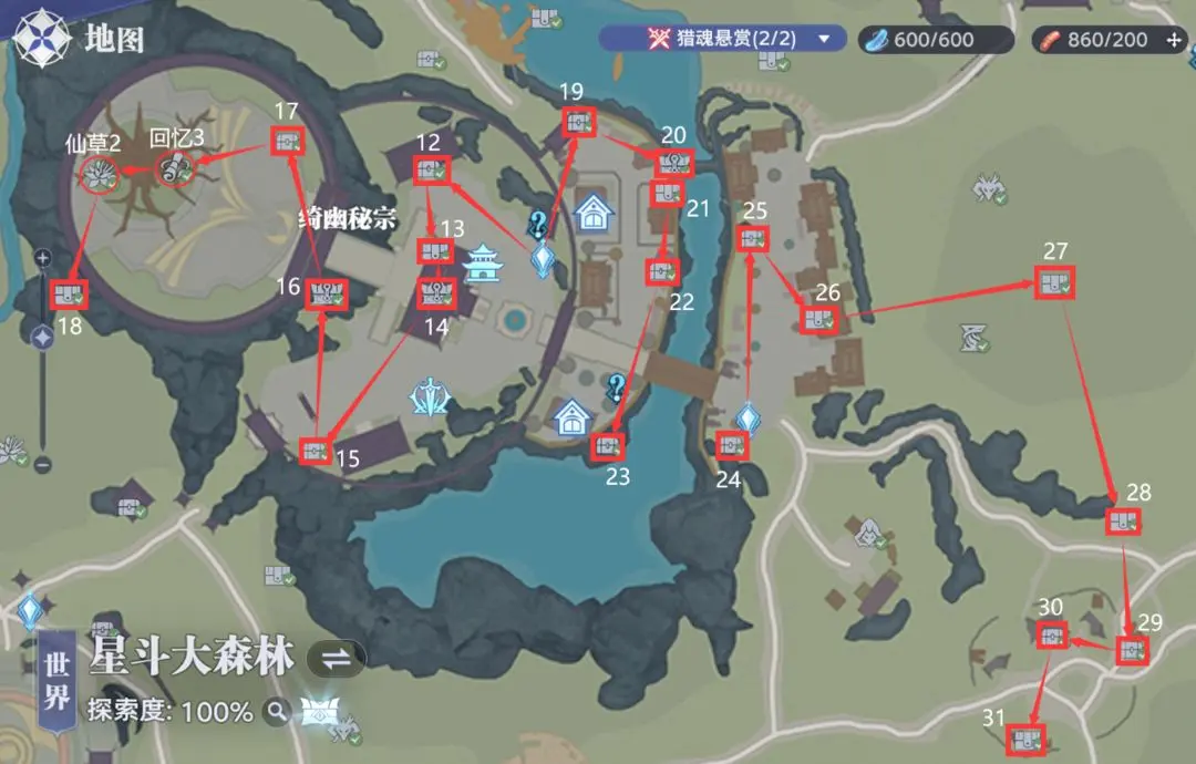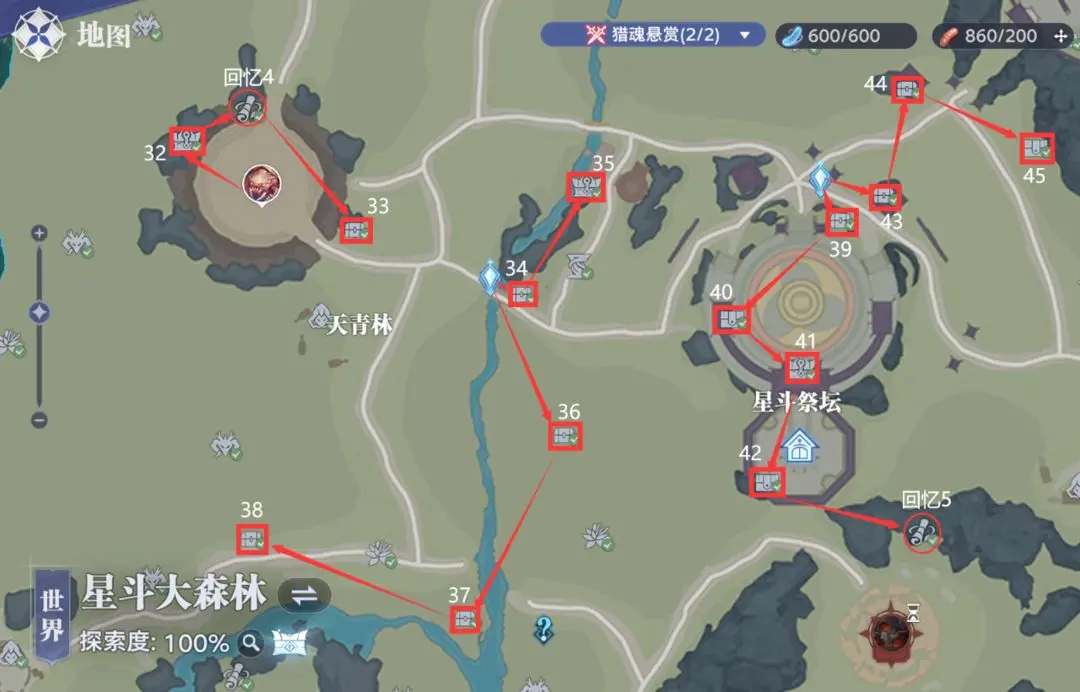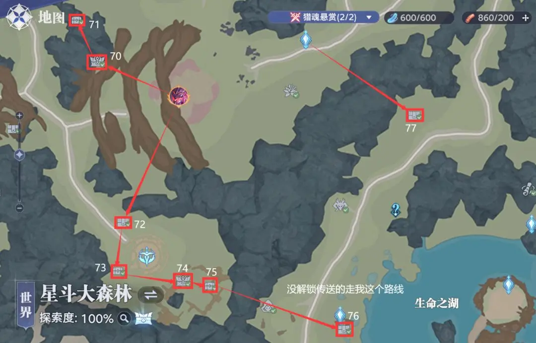 星斗大森林隐藏宝箱位置线路图如下: