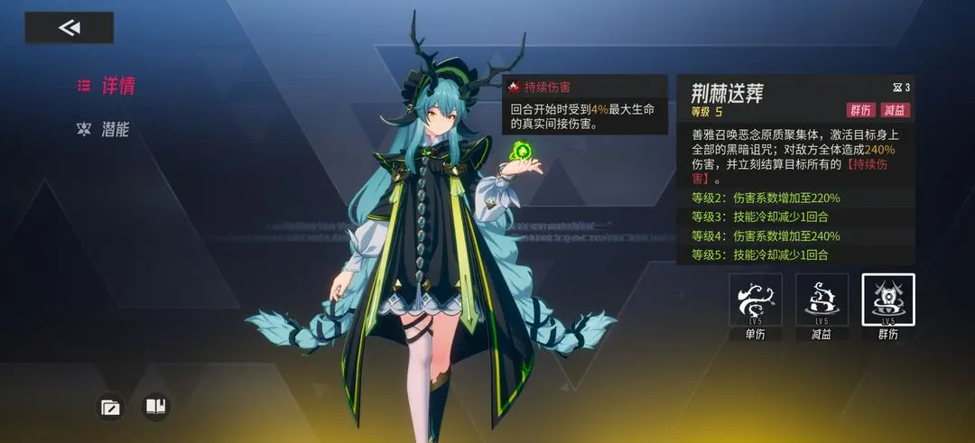 夏妲(水系)启动速度快,技能可进化并拥有多次行动能力,但生存能力较为薄弱,需队伍提供保护。