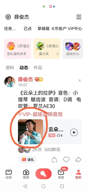 5.在K歌页面中挑选想要制作视频的作品。