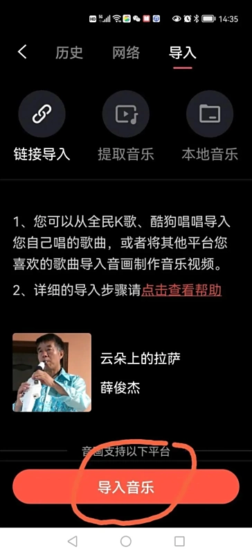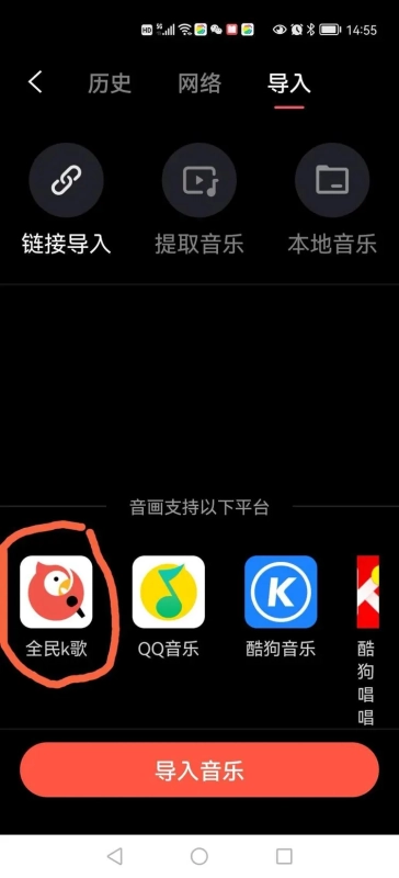 3.支持通过QQ音乐、酷狗等外部平台自行导入所需歌曲。