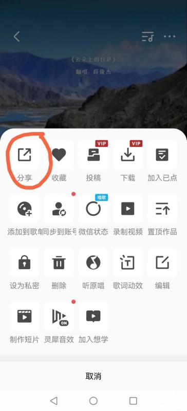 7.在弹出菜单里点击“分享”选项。