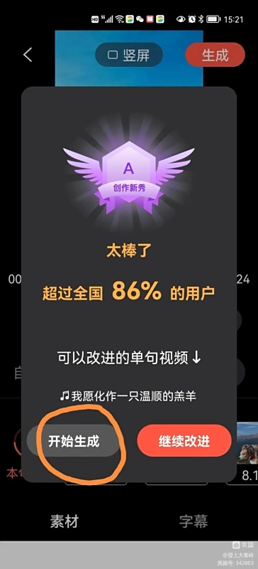 5.添加软件内置的精美素材,确认后点击生成,制作完成可分享至微信、朋友圈等平台。