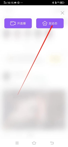 2.此时会弹出窗口,在窗口中点击“发动态”选项。