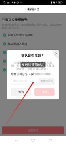 6.最后通过绑定的手机号获取验证码并输入,点击“注销”,即可成功注销账号。