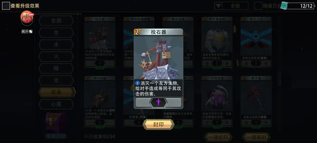 T0首选:投石机(0费,过牌兼自杀)。T1次选:龙血瓶(低费,回血兼自杀)。灵魂宝珠和奥能耳环因费用较高且技能费高,效果一般可不拿。其他实用装备包括圣杯(提供额外法力)和丛林法杖(加快自杀节奏)。