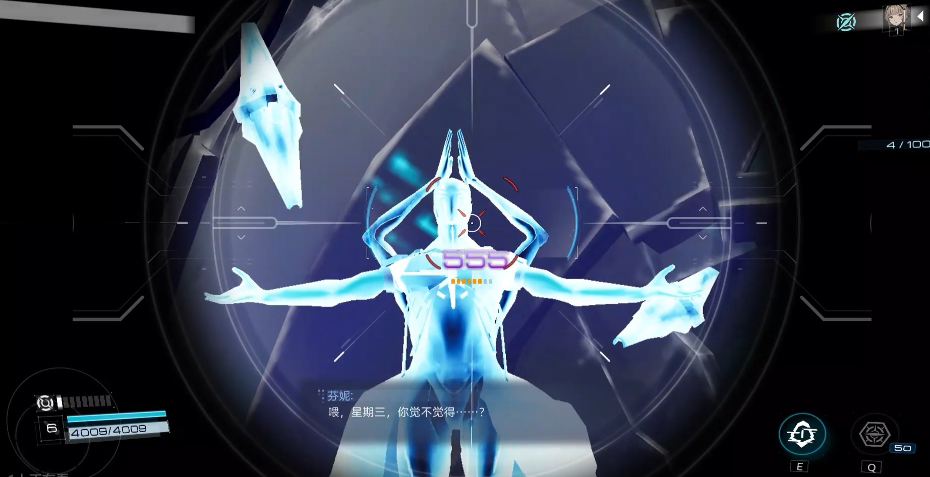 当面对这一BOSS时,大家不要感到慌张,因为其实它是比较脆弱的,除了大招之外,剩下的攻击伤害并不算很高,大家只要去瞄准它的腹部以及头部进行攻击,就可以尽快地消灭敌人。波伏娃在被打掉半管血后,会进入一个霸体状态,这时候它的护盾会变得更加强大,玩家只要打破它的护盾就能成功让波伏娃进入僵直状态。