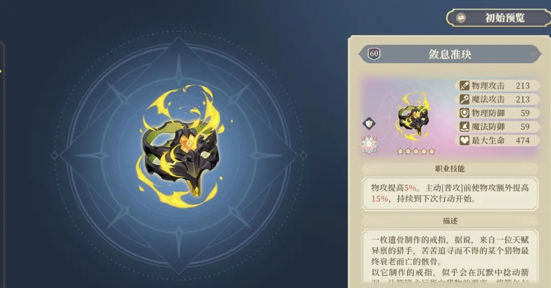 物攻5%和主动普攻额外的15%物攻加成只适合普攻角色使用。效果非常专一,为了防猎魔人,也是下尽功夫了,主动普攻防小锁支援,主动普攻前额外物攻提升防猎魔人超高倍率技能组合。黑羽本人使用会比较舒服,但提升效果并不是特别强。