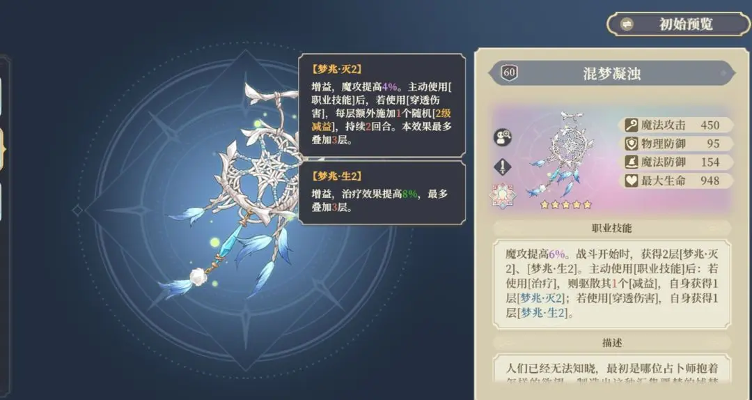 30%的防御提示和额外25的防御提示可以最大限度拉高使用者防御但是铃兰防御是最没用的词条。治疗有辉月银辉的角色后会额外给予二级增益,不过一般般。