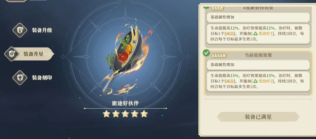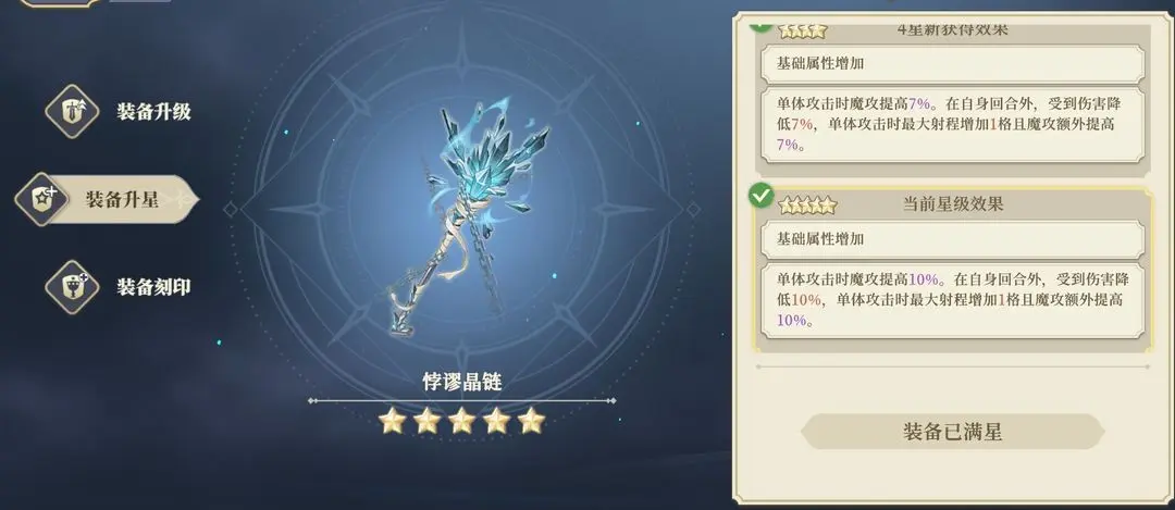 原本是为卡大妈准备的专武,但是定身效果5星依然有2回合冷却,属性加成也没有别的高,属于通用。(定身是什么小丑效果,是谁还没有免疫定身)提醒一下,这玩意4星和5星就差个一回合定身冷却,所以不是很建议合5星。