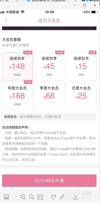 在大会员界面,如果以前是会员没续费的话,就会出现续费大会员字样(PS:像笔者一样)第一次充值就是哪里就是成为大会员的字样,点击进去,会出现6种套餐可以选择,这个就看个人喜欢那种套餐了,笔者曾经试用了一个月,但是又不怎么追动漫和电视剧觉得没必要就没续期了