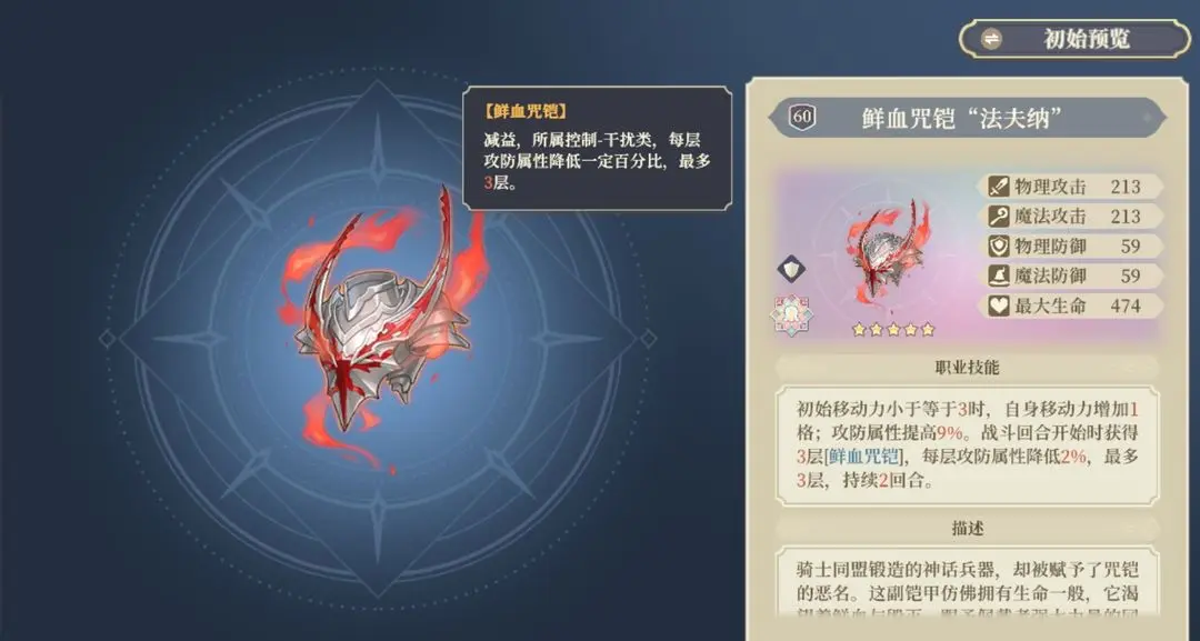 自残甲,目前只有丹丹和sp麦莎可以使用。低星的预冷却注定是高星启用。但是高星效果非常强悍,每回合可以回复一点能量并且额外移动3格。扣自身40%的生命值完美搭配丹丹个性获取个性技能。