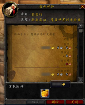 拍卖成功的所得金币将通过邮箱发送。