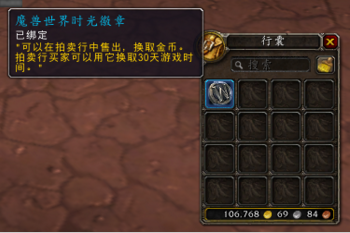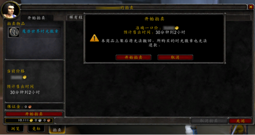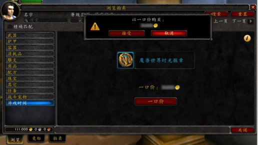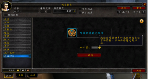 5、在拍卖界面选择游戏时间标签,可以用金币购买魔兽世界时光徽章。