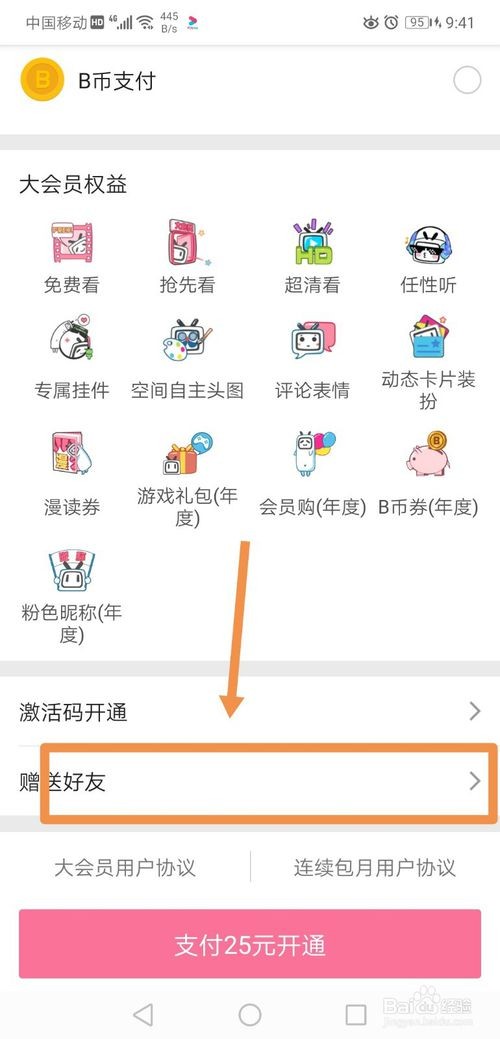 或者点击“赠送好友”,选择好友后,点击下一步,选择好大会员的套餐后,点击“支付并开通”即可。同理,朋友也可以给你赠送大会员身份;
