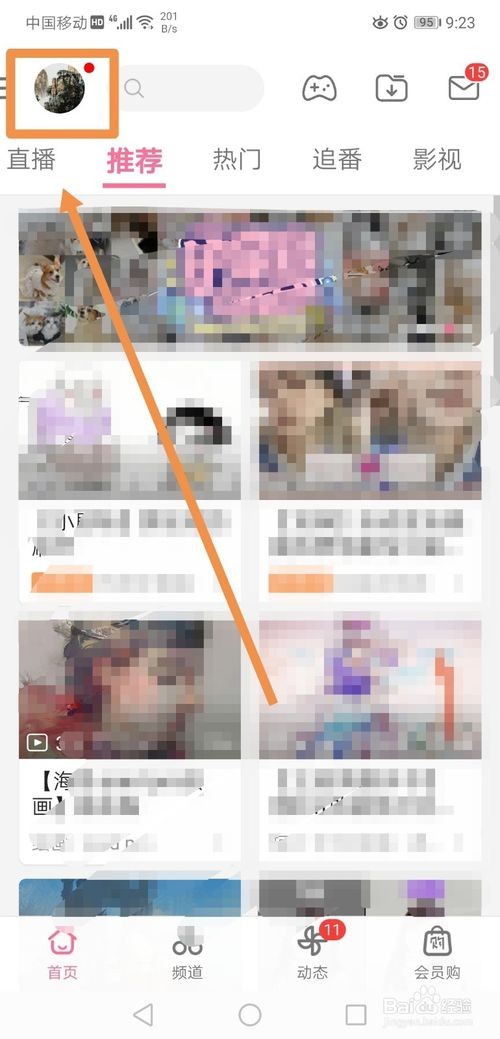 来到APP打开界面——“推荐”网页,点击左上角的登录头像;