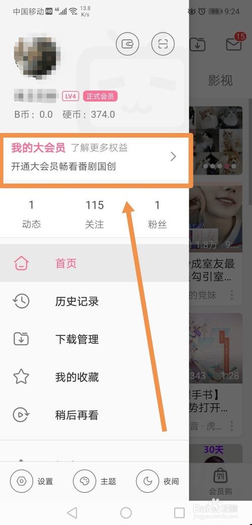 会弹出关于我的界面,点击“我的大会员”进入。