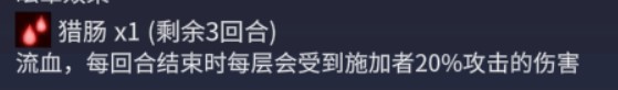 流血伤害不受任何加成,最多叠加五层,也就是攻击数值的100%,在前期攻击低下的情况下,伤害说实话很不够看,刮痧者实至名归。再加上SP技能CD砍了一回合,即使是能秒的低压周回本也连发不了;不蚀的箭矢连携奖励被砍,猎肠者的连携辅助性能也大大削弱。