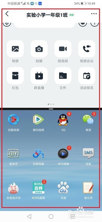 第二步打开我们的手机,进去钉钉,长按运行键,进行分屏
