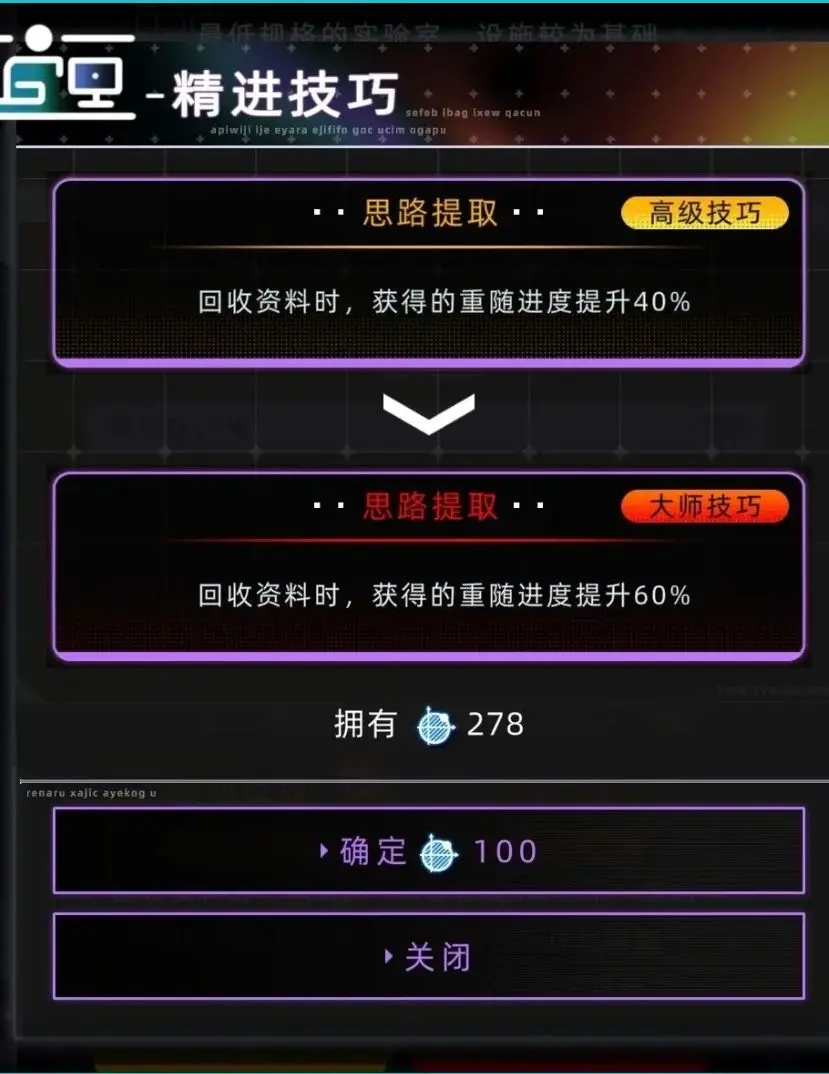 变更技巧需要花费100学术点,可以从三个没有的技巧里三选一更换技巧