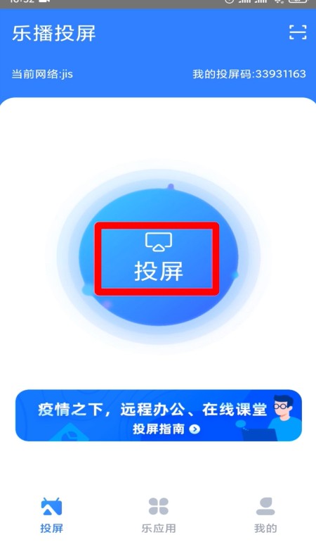 打开“乐播投屏”,点击“投屏”。