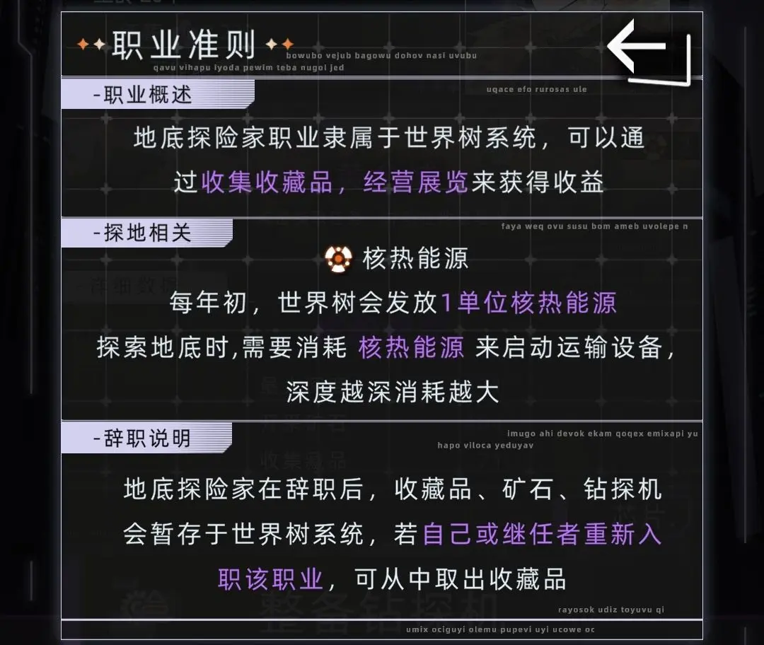 地心探险家职业超有挑战性!工资随挖掘深度提升,还能借世界树加薪。挖掘时留意任务地点,不同区域有不同资源与怪物。核热能源可留存下年用。进度条升到 LV22 有油量补给。新手选技能有讲究,展览馆传代要重开,收藏品不佳时,带满级挖地机从上层直挖地心。