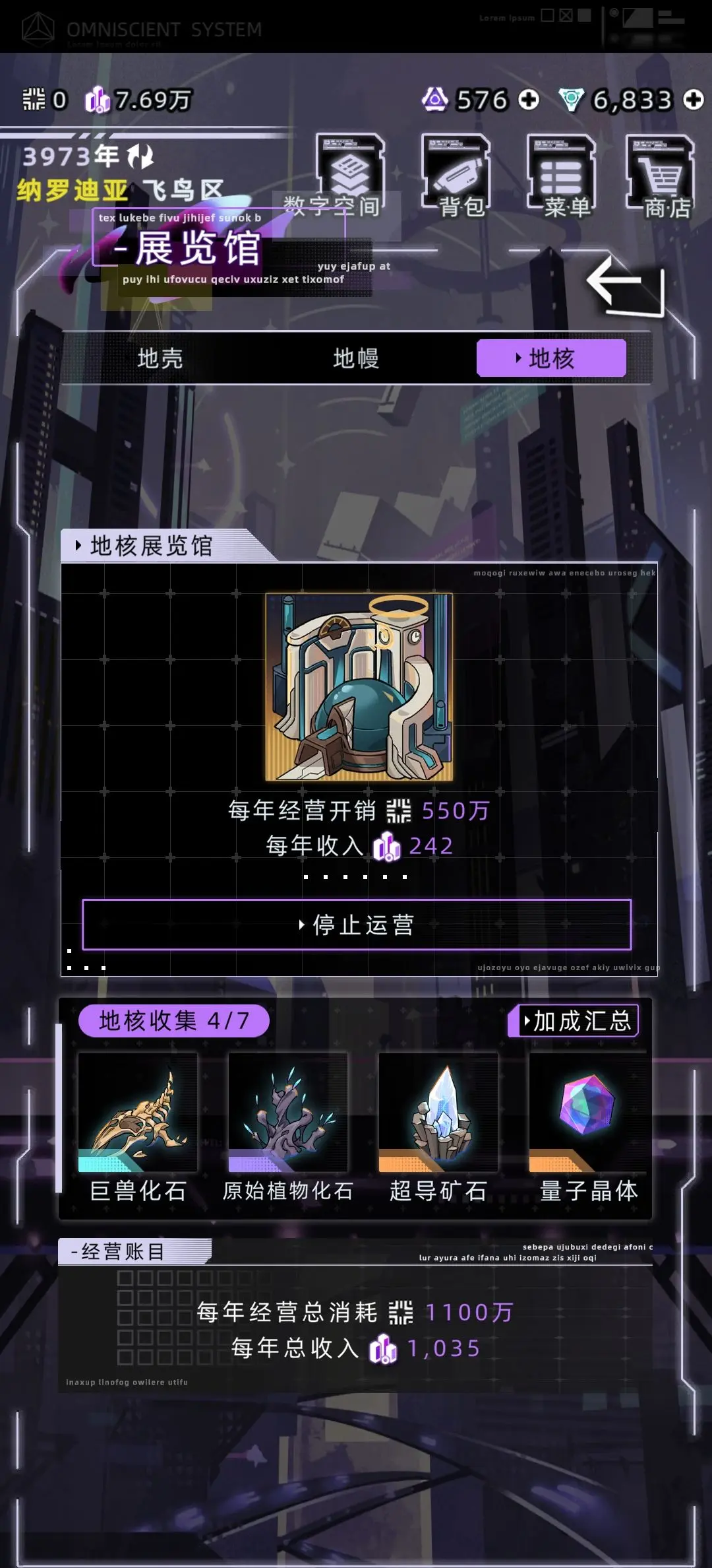 地壳-沉积层,地幔-上地幔,地核-外核,可以挖到展览馆,展览馆在左上角小地图上显示为粉色,需要手动开启展览馆,用信用点维护,获得股权