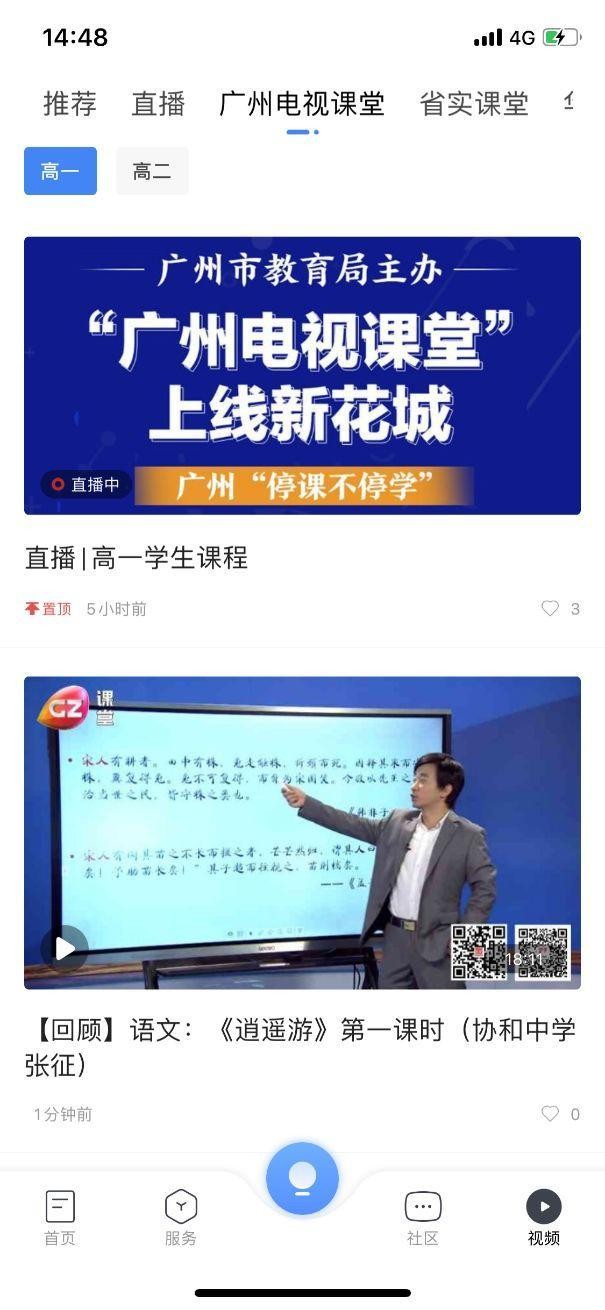 3.如果错过了收看直播,也可以看回放:视频——广州电视课堂,有相关课程资源的回放。