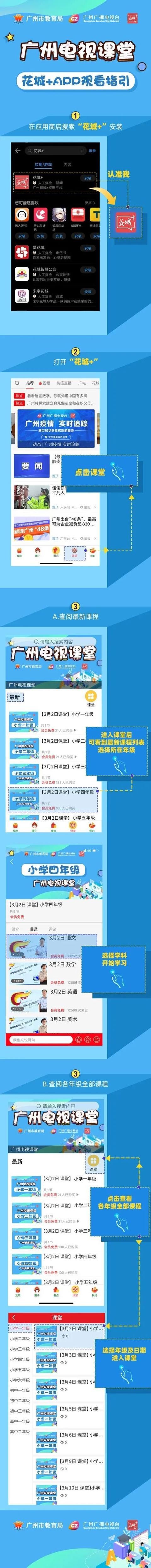 广州电视课堂”高中非毕业年级3月2日起、义务教育阶段3月9日起上线,按照统一课表每天播放各年级线上教育课程,为全市中小学生提供稳定、便捷、安全、绿色的线上教育服务。如果家里没有电视一个怎么用手机观看直播上课呢?下面途知小编为广大朋友带来手机观看广州电视课堂说明大全!