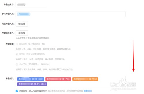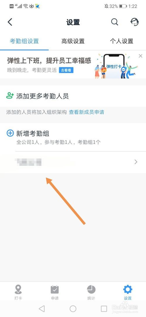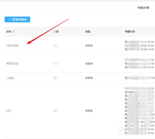 在屏幕右边就会出现本公司内的所有考勤组。找到你要取消人脸识别的考勤组名称。