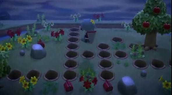 1、首先我们可以先把地挖上几个大坑,最后能够形成一排,再加上几个限制活动的大坑。
