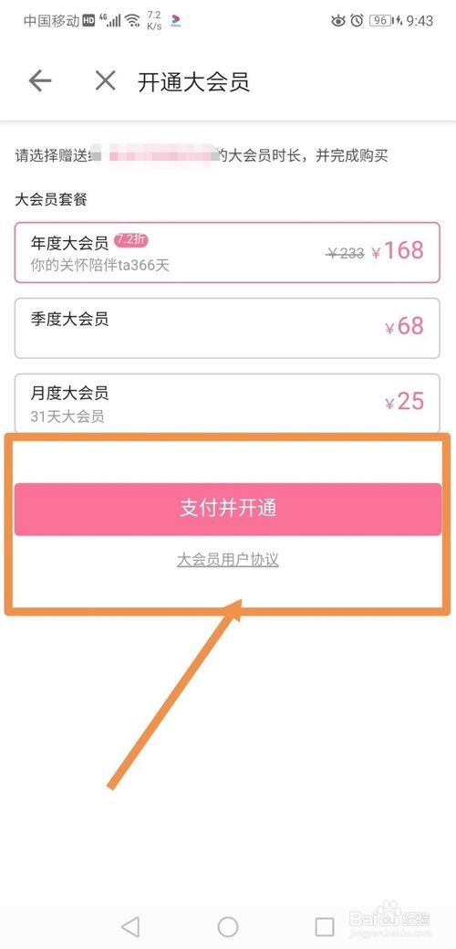 或者点击“赠送好友”,选择好友后,点击下一步,选择好大会员的套餐后,点击“支付并开通”即可。同理,朋友也可以给你赠送大会员身份;