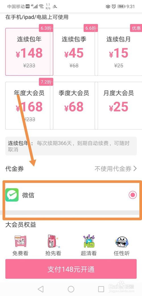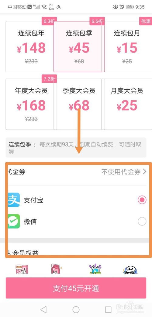 “连续包年”套餐只提供微信支付,“年度大会员”、“季度大会员”、“月度大会员”支持支付宝、微信、QQ支付和B币支付,其他套餐只提供支付宝和微信支付。