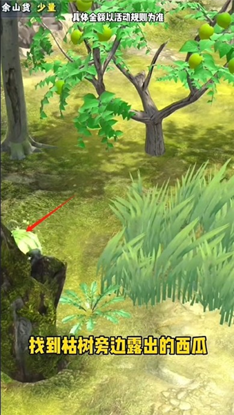 5-2关找到枯树旁边露出的西瓜,点击20下即可获得爱心西瓜。