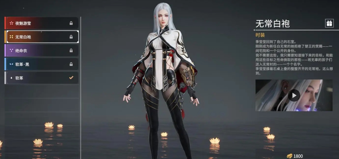 最后就是小编个人很喜欢的无常白袍,它需要花费1800金砖解锁,这款皮肤简洁大方,以白色为主色调,适合喜欢简约风格的玩家。