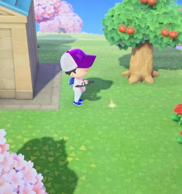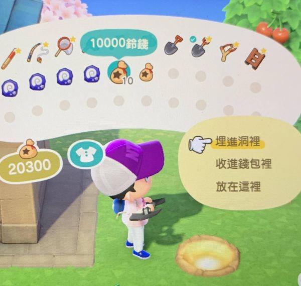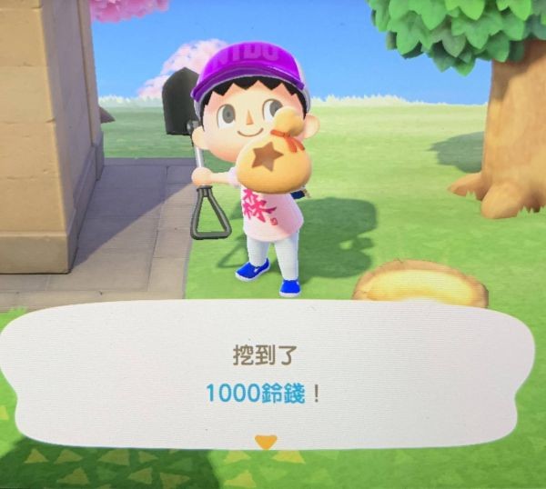 用铲子挖开后会得到1000铃钱,并且看到你挖开的洞会发光,这时不要把地铺平。