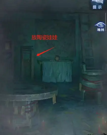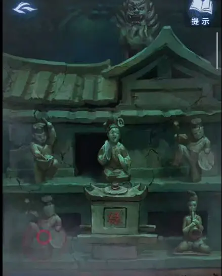 完成游戏后,点击屋子模型,根据纸人庙场景许愿牌线索,调整对应位置上的陶人和石块上的字为 “禄”,然后拾取【瓷器娃娃】和【木雕少女】,同时注意露在外面的陶人的手的指向为 “上下右下左上”。